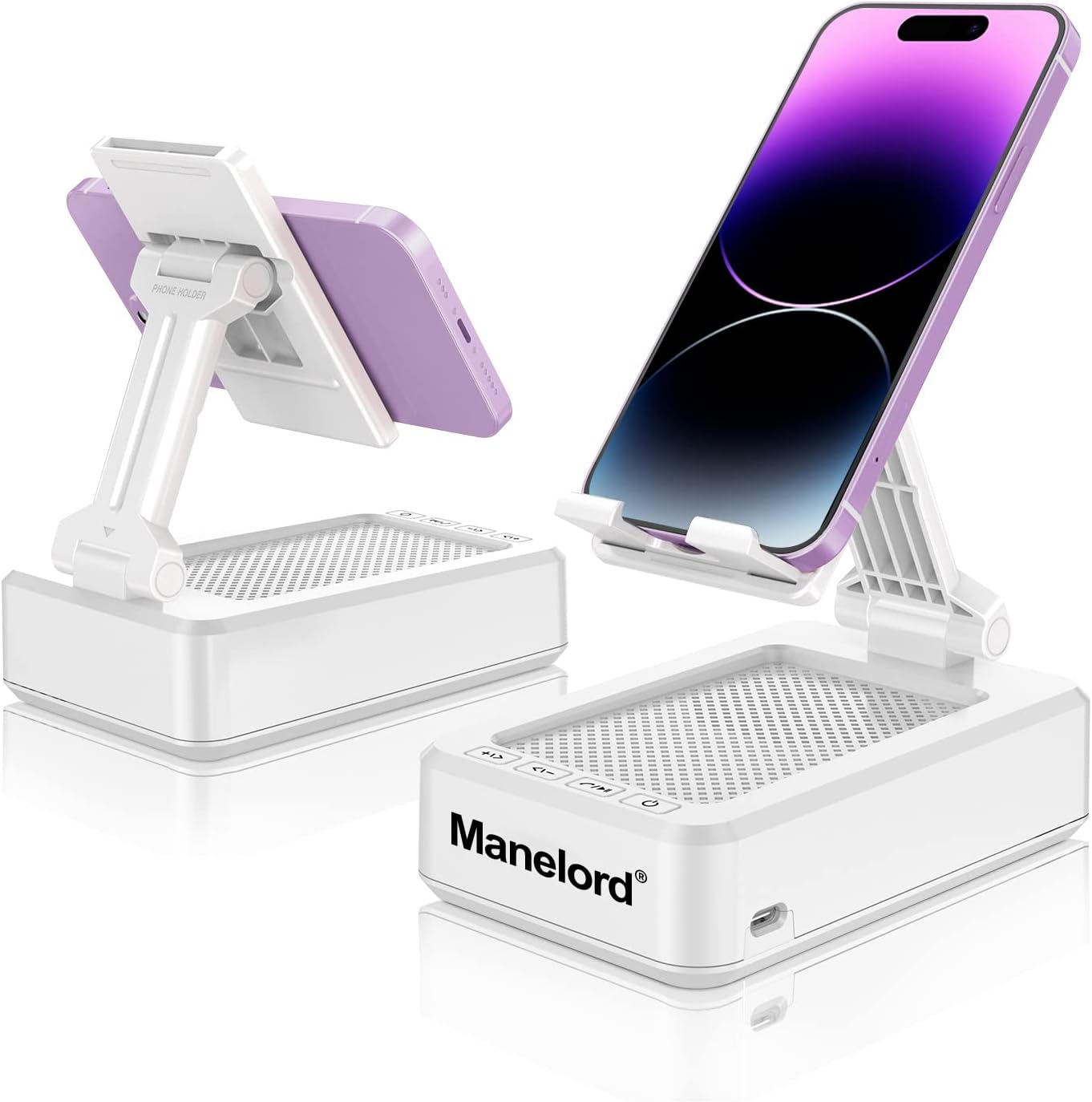Manelord Bluetooth Speaker – Wireless Bluetooth Speaker with Phone Stand, HD Surround Sound Bluetooth Speaker for Home and Outdoors, with Adjustable Phone Holder for Desk, Adjustable Cell Phone Stand with Anti-Slip Base