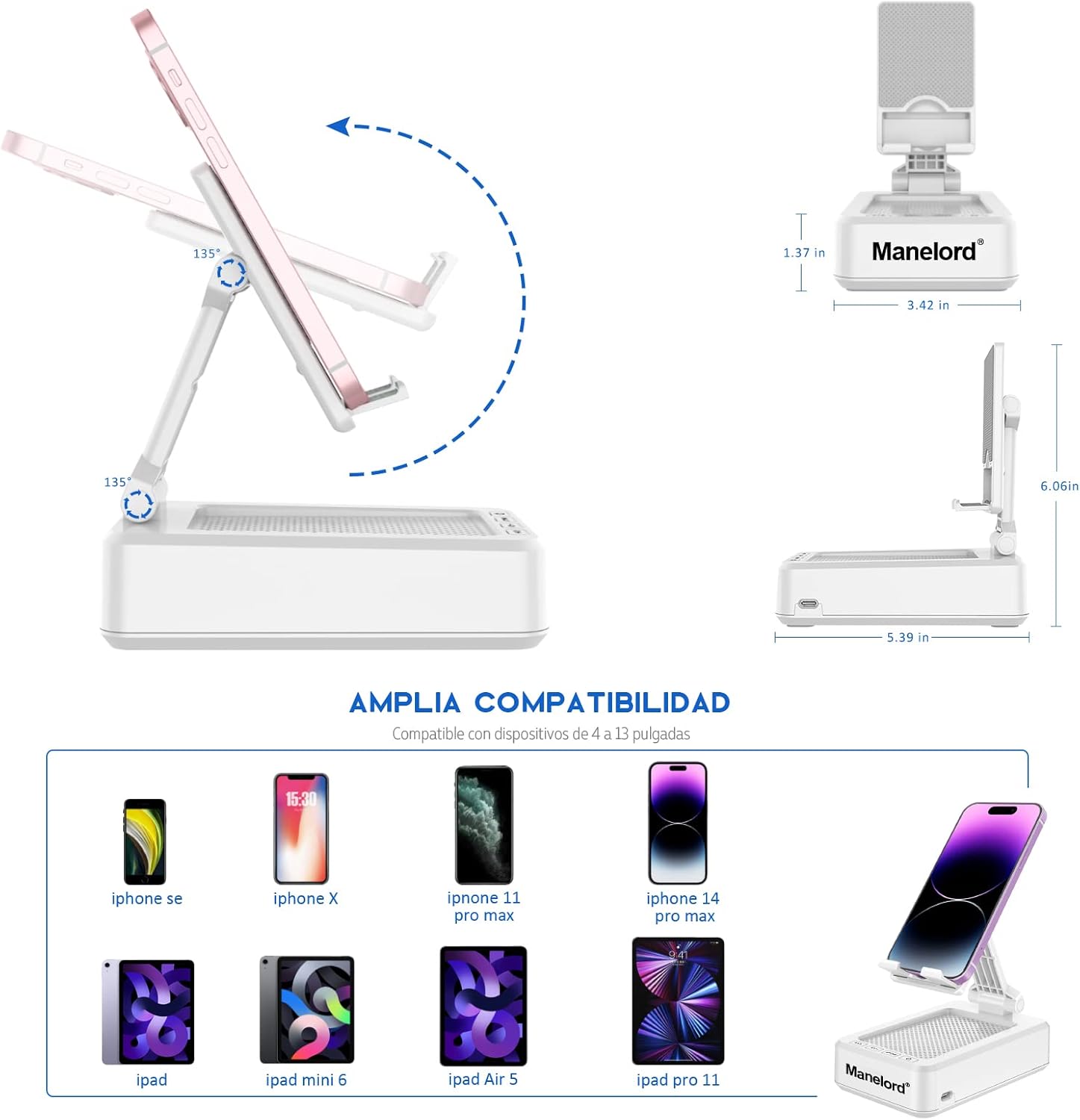• Manelord Bluetooth Speaker – With phone stand for most 4″-13″ Smart cell phones, Tablets and e-readers, Compatible with Phone 12 Pro/11/X/XR/Max, Switch, iPad, Samsung Galaxy S10 /S10 /S9 /S9 /S8 /S8 ,Samsung Tab, LG, Sony, Google Nexus, Kindle etc.