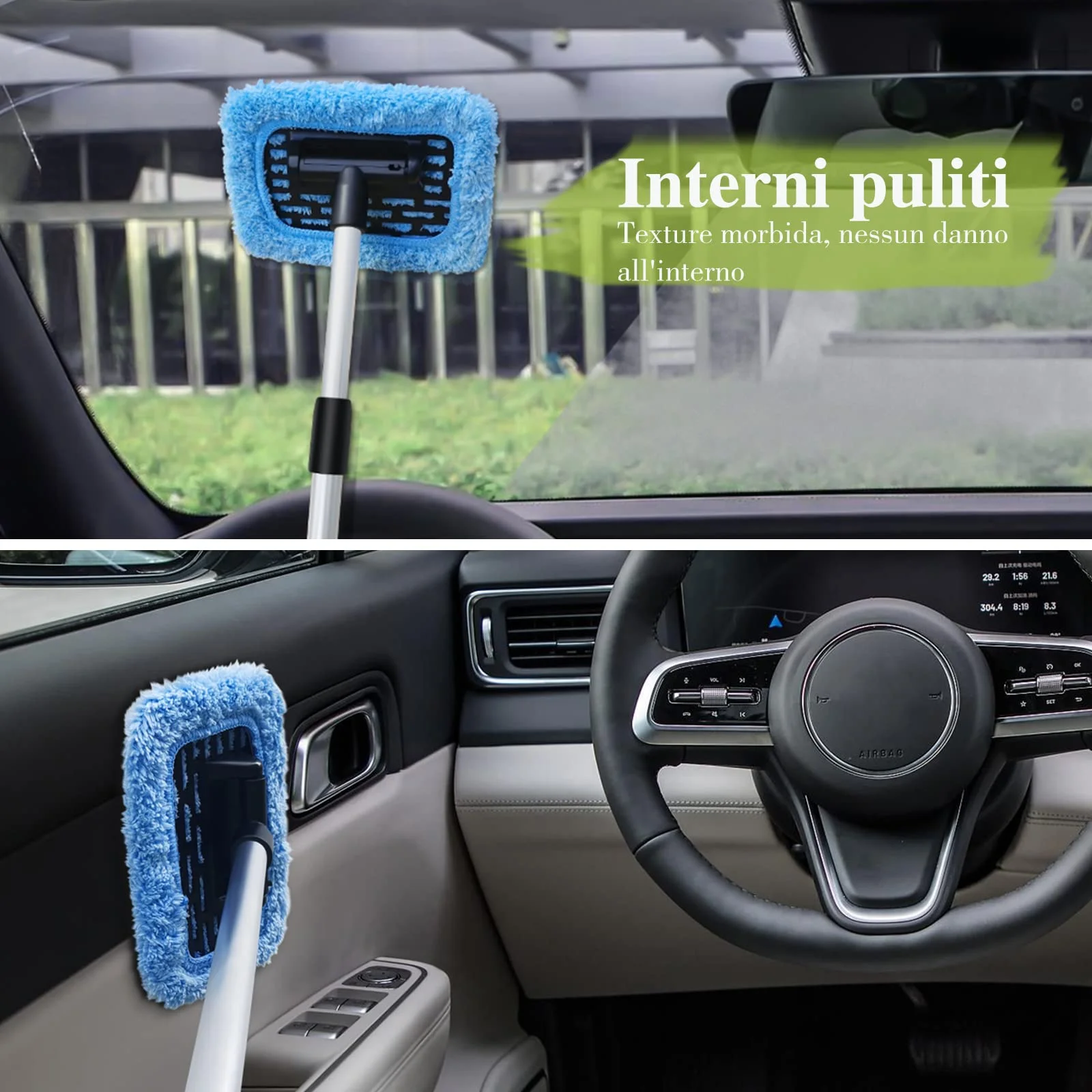 Fast and Easy to Clean Auto Windshield: Clean car window interiors and exteriors without straining. No more hurting your back, with the extra long extension handle and pivoting head getting to those hard-to-reach car window bases is simple.The twist lock on the handle is tight and it stays extended all the way.