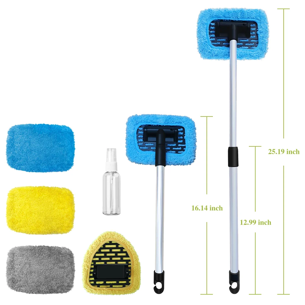 Manelord Car Window Cleaner, With Telescopic and Extendable Handle Auto Inside Glass Wiper Kit Easy to Clean This product is designed to clean the windshield of a car, making it clean and bright. Our window wiper is not only suitable for cars, but the extended part makes cleaning trucks and SUVs easier than ever. This product is equipped with two different cleaning heads, which can be replaced at any time according to different situations.The microfiber pad can be reused after cleaning, please clean all microfiber pads before using again. Avoid using fabric softener or bleach when cleaning microfiber pads. The microfiber pads can only be air-dried, do not iron or expose them to strong sunlight. Do not excessively adjust the extension of this product to avoid damage.